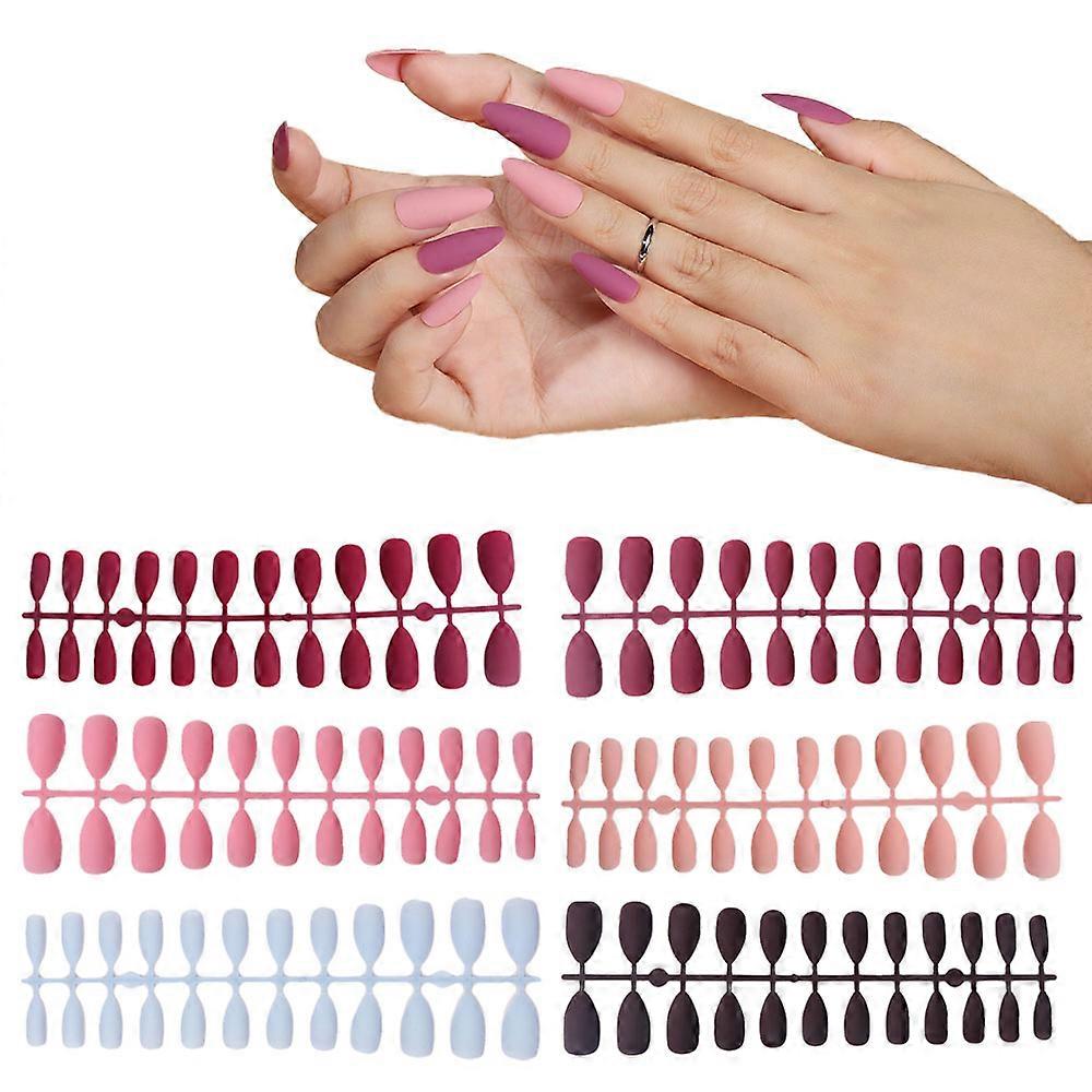 12 Sets Fake Nails Medium Almond,Matte Medium Almond Fake Nails Full Cover For Nail Art Diy-Style4