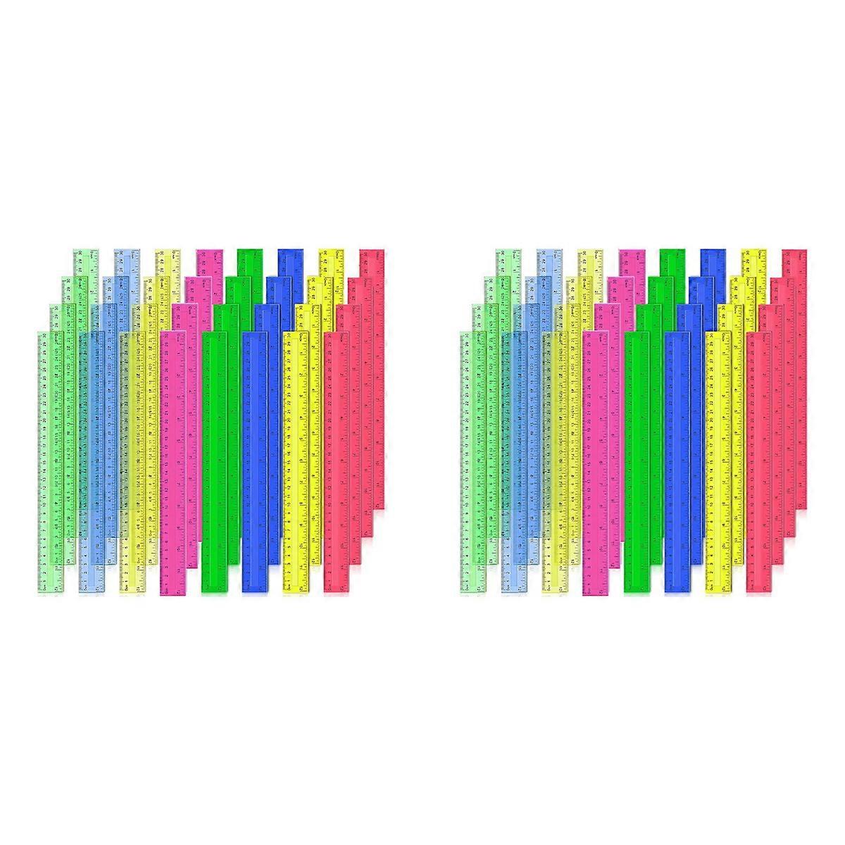 12 Inch Plastic Rulers, 64 PCS Transparent Assorted Color Metric Bulk Rulers with Inches Centimeters