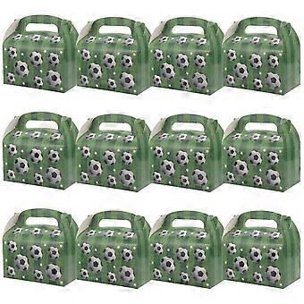 12 Pack Portable Soccer Themed Party Boxes with Handles for Treats, Cookies, Candy – Perfect for Birthdays, Graduations, Events
