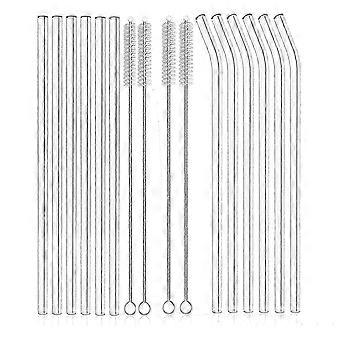 12PCS Reusable Clear Glass Straws Shatter Glass Drinking Straw 6 Straight and 6 Bent with 4 Cleaning Brushes