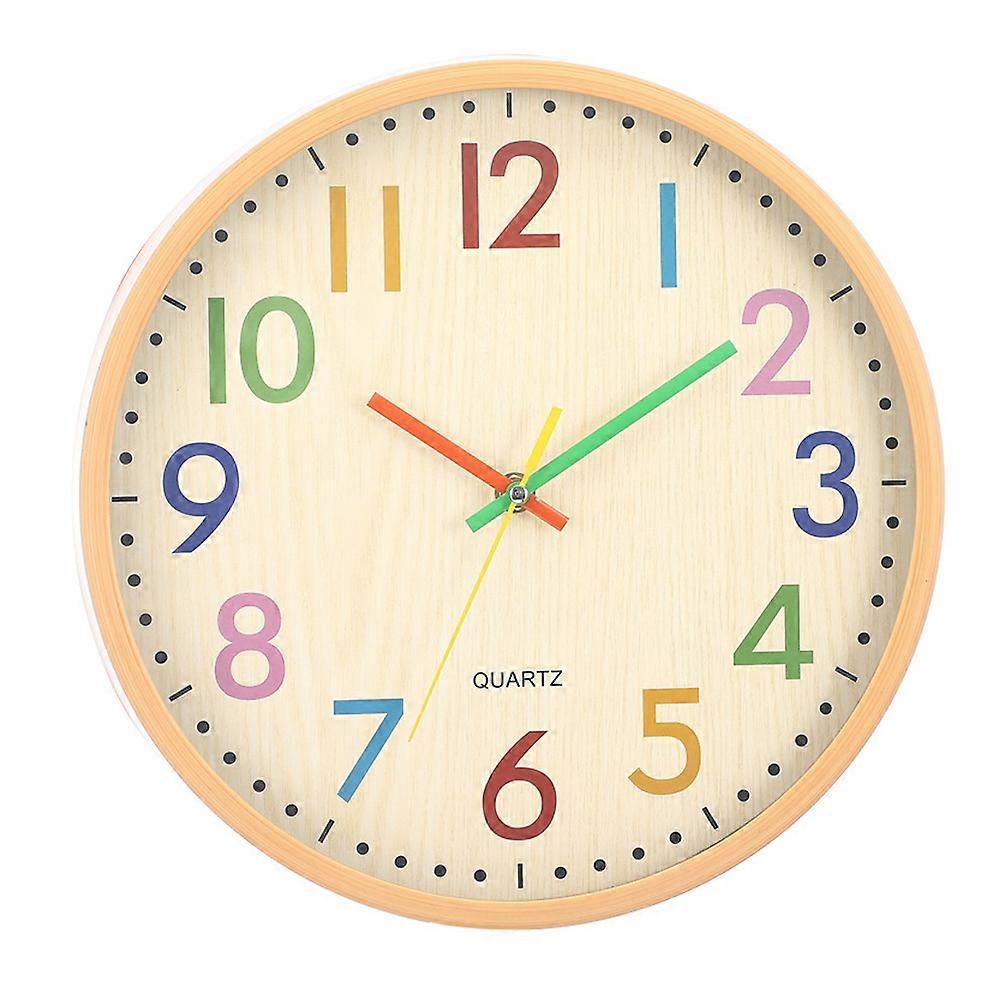 Learning wall clock for classrooms, playrooms and children's bedrooms We make this wall clock easy for children to understand, bright and charming, but not distracting, so your children will learn faster and easier than traditional teaching methods. Our wood grain frame learning clock is a 12-inch analog clock with a clear white surface and lots of colorful numbers and fingers. Our education clock is the perfect room decoration for any child's bedroom, home school classroom, playroom or school classroom. Our time-telling teaching clock is a silent clock with fashionable continuous sweeping function, which is very suitable for room and wall decoration in children's room, nursery or home school classroom.