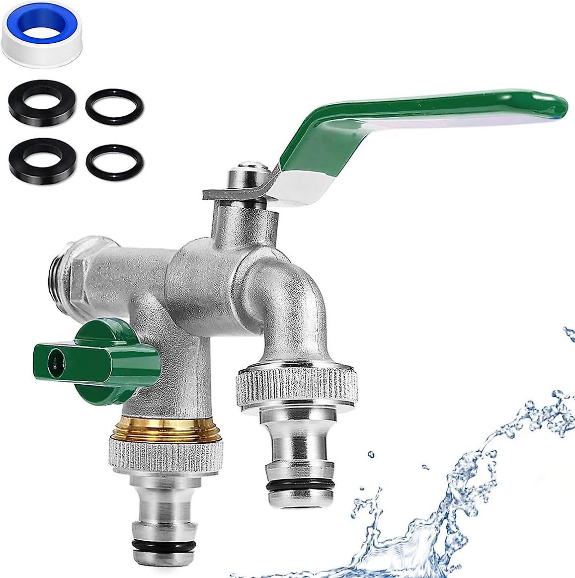 1/2 Inch Double Faucet, Garden Faucet, Brass Double Faucet with 2x 3/4 Inch, for Garden, Household and Industry (Green)