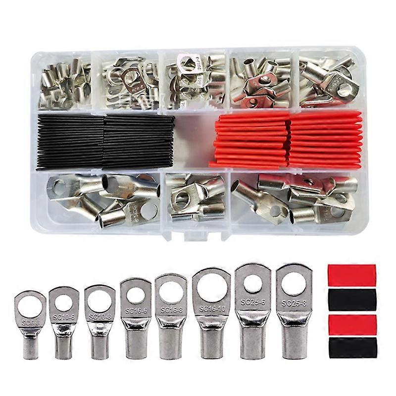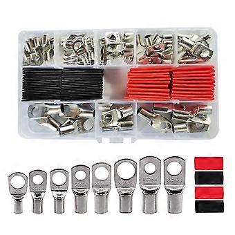 120PCS Heavy Duty Wire Lug Battery Round Cable Ends Crimp Assorted Kit Bare Tinned Copper Ring Terminal with heat shrink tubing