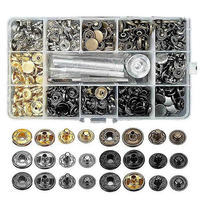 120 Sets Snap Fastener Tool Kit, Metal Snaps Button Leathercraft Rivets Press Studs, 12.5mm Leather Snap Fastener Tools Kit Double Cap Brass Rivets