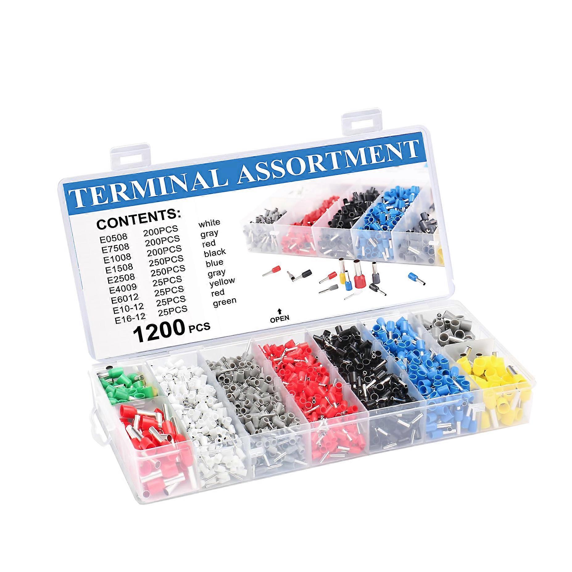 1200PCS Boxed Assorted ferrule terminal Kit Crimper insulated VE Tubular Wire end Cord End Bootlace cold press Connector Large size