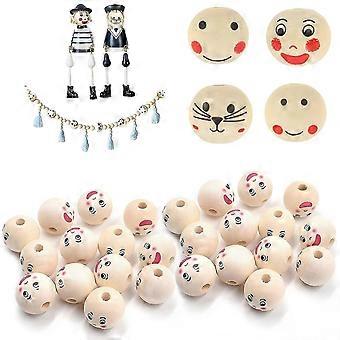120pcs Wooden Beads With Face, Wooden Beads, Natural Wooden Balls With Hole