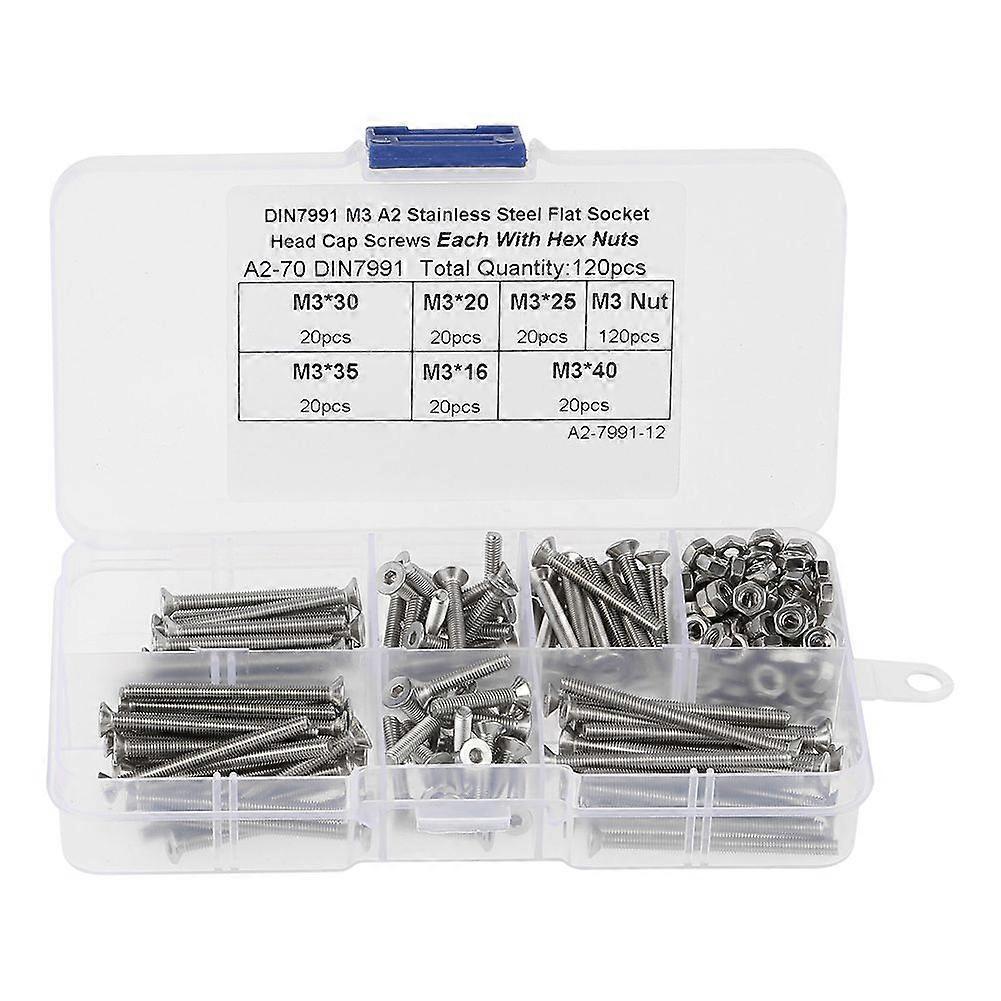 120pcs M3 Stainless Steel Hex Flat Head Screws Set with Box