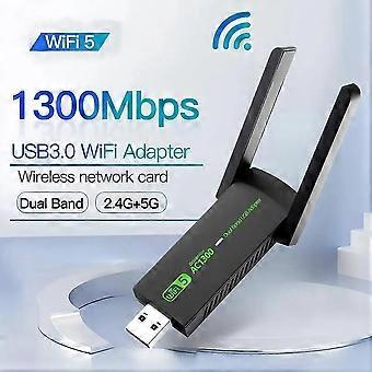 1300Mbps USB 3.0 WiFi Adapter Free Driver 2.4GHz/5GHz Dual-Band Wi-Fi Dongle Receiver 80211ax/ac/a/b/g/n WIFi 5 Wireless Network Card For PC Laptop Ed