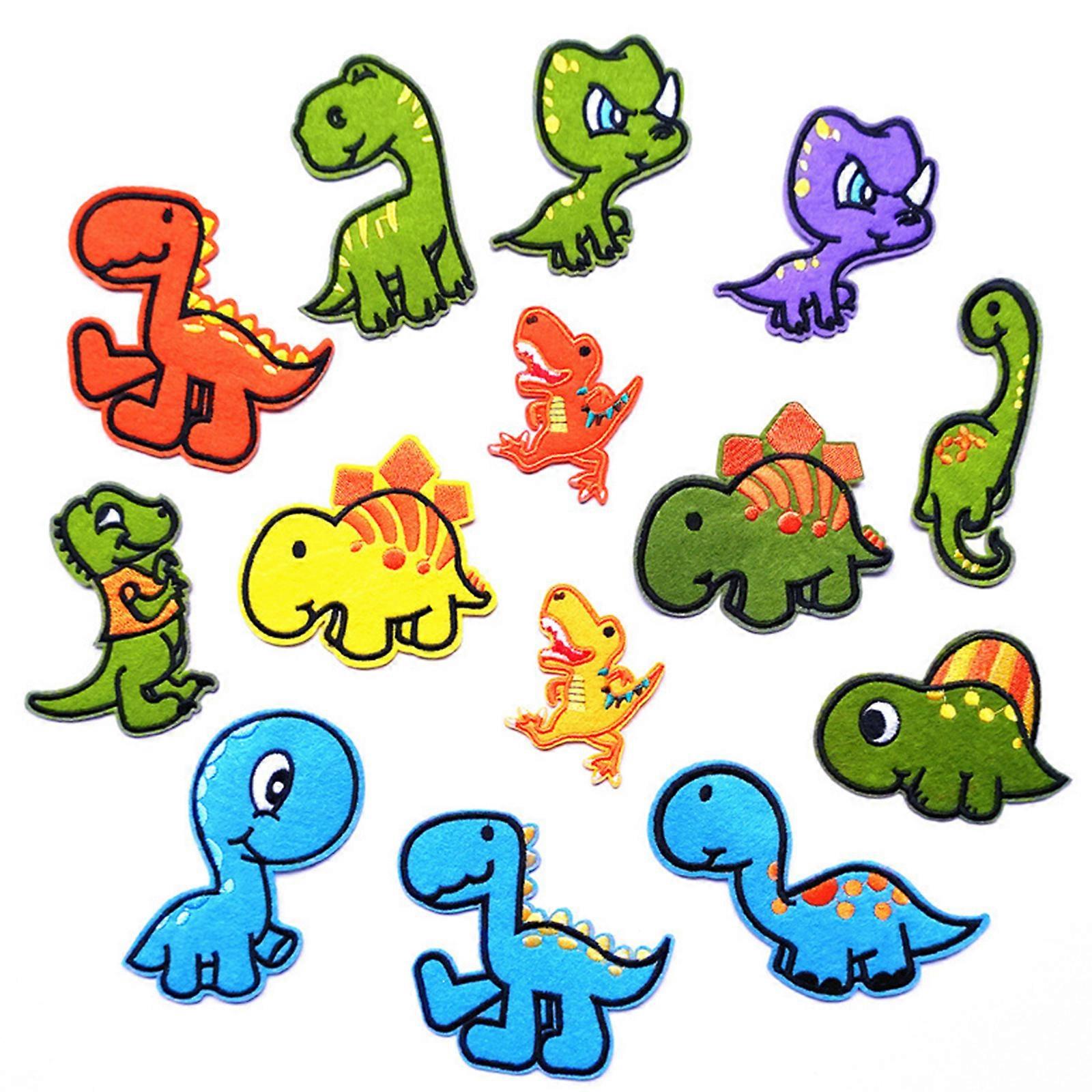 14Pcs Colorful Cartoon Dinosaur Sew/Iron On Appliques DIY Embroidered Patches
