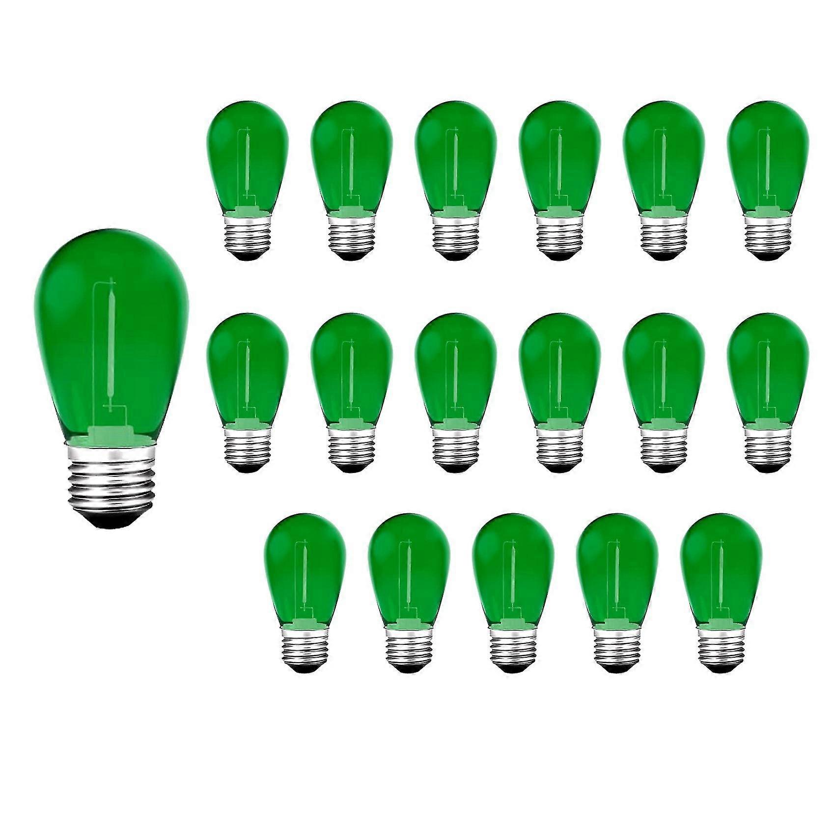Shatterproof and waterproof: S14 led bulbs are made of plastic materials, which is durable and drop resistant,not easy to fragile. Perfect replacement bulbs for glass incandescent bulbs of indoor and outdoor string light.Energy Saving and good heat dissipation: 1 watt LED filament light bulbs are equal to 11 watts incandescent bulb lamps,90% energy saving than the edison incandescent strand light bulbs, keep cool to the touch, never overheats.Widely use and Easy to install: 2200K warm white LED provide a warm light glow and build the retro look of antique filament incandescent bulbs with the advantage of LED, which is widely use in indoor and outdoor string light and other lighting fixture, you just need screw it in to the E26 regular base for string lights and other E26 medium Base lamp,then you can enjoy the vintage atmosphere and comfortable warm white glow.Long Lifespan: 25,000 hours long life span up to 13 years with 5 working hours per days use, cost and energy saving.Warm Tips: These 3V S14 LED Edison bulbs is only suitable for Solar String Light which must work with low voltage bulbs.Material:plasticcolour:GreenPackage Contents:15 * LED BulbsOnly the above package content, other products are not included.Note: Light shooting and different displays may cause the color of the item in the picture a little different from the real thing. The measurement allowed error is +/- 1-3cm.