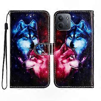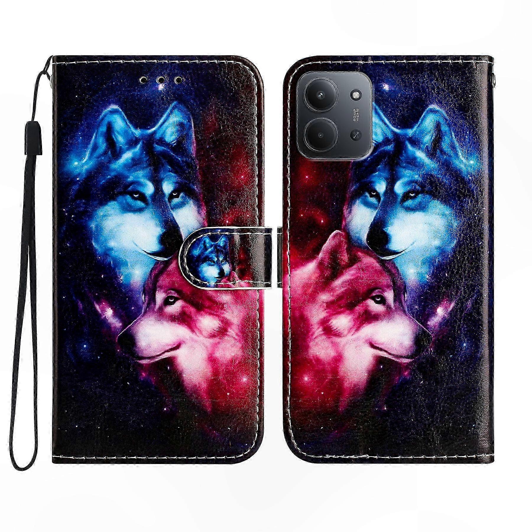 15C 4G Wallet Case with Stand, PU Leather Printed Wolves Design Phone Cover with Strap