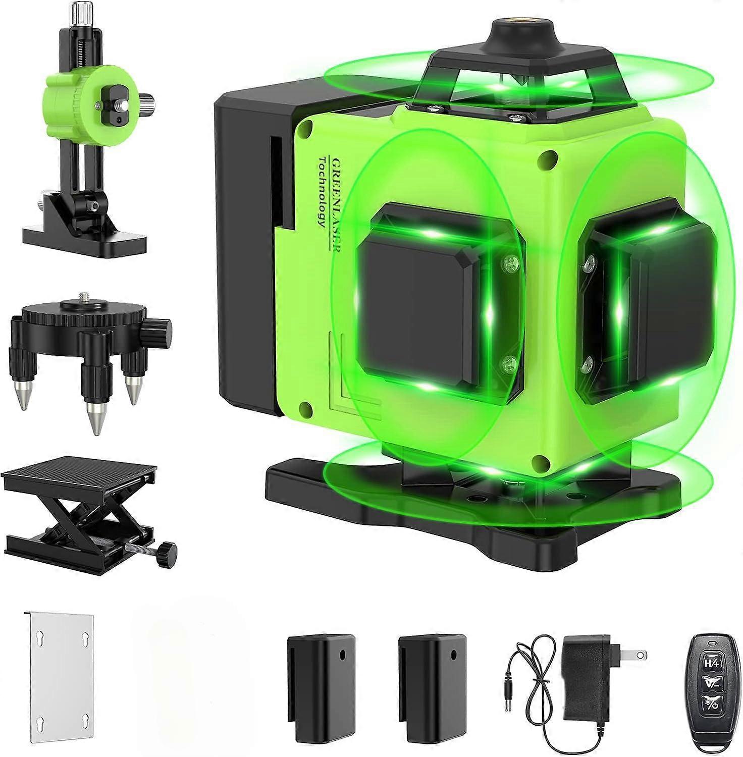 16 Lines Laser Level 360 Self Leveling, 4x360° 4D Green Beam Cross Line Lazer Level with 2 Batteries,for Tiling Floor Construction and Picture Hanging