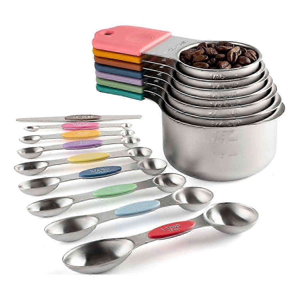 16Pc Magnetic Stainless Steel Measuring Cups&Spoons Set, 7 Heavy Duty Cups,8 Double Sided Spoons with Leveler Multicolor