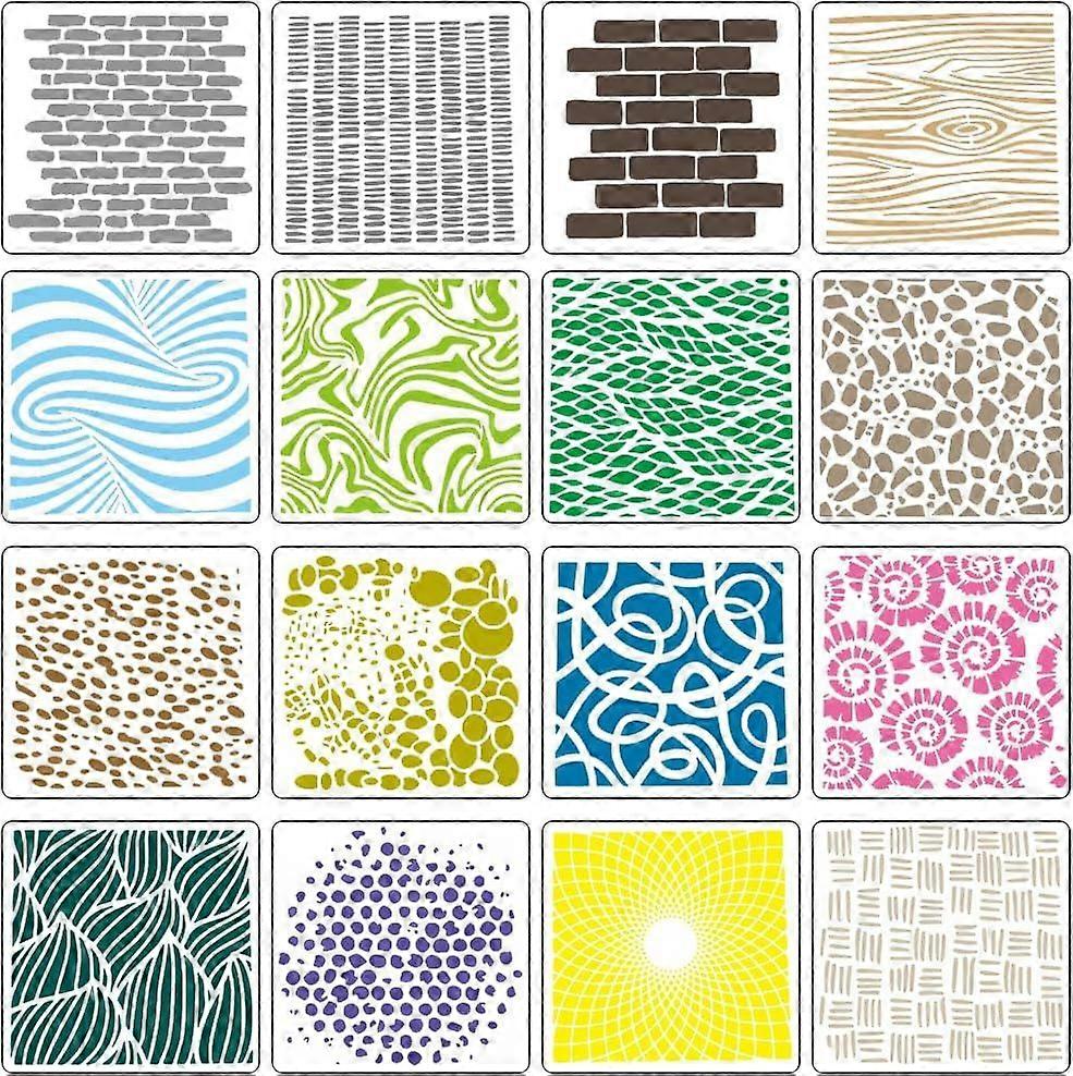 16Pcs Cubist Reusable Crafts Stencils Abstract Geometry Texture Brick Dot Waves Stencils Layering Drawing Templates Painting on Card Canvas DIY Crafts
