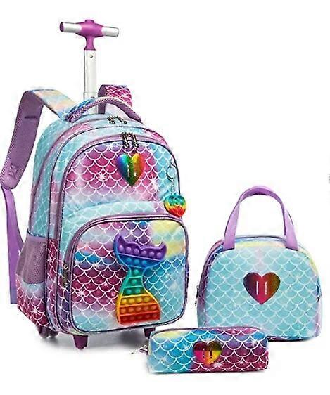 17 Inch school trolley backpack bag School Rolling bag for girls school wheeled backpack lunch bag set schoolbag with wheels