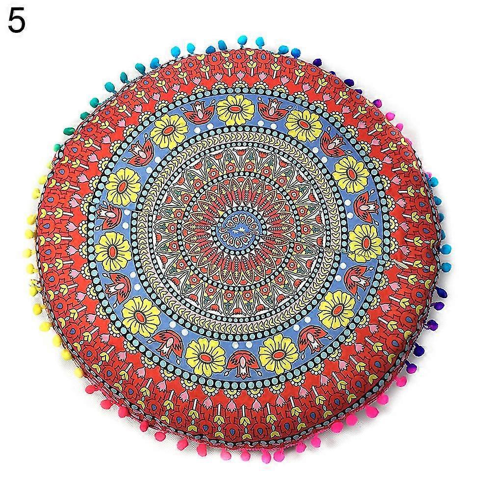 17inch Round Pillow Case Decorative Colorful Pom Pom Trim Boho Cushion Cover