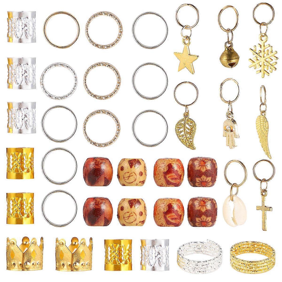There hair rings are made from metal, light weight and durable, with different shapes and patterns, make your hairstyle look more attractive. rings is very suitable for your braid hair, and make you stand out in your hair and adds attention getting details to your look. Features - ColorAssorted Color - Material: Metal. - Size: 1x1x1.5cm/ 0.39x0.39x0.59inch. - Made of premium metal material, safe and durable for a long time use. - Braid your hair in desired style, make your hair looks special and fashionable. - Great for braids, dreadlocks, ponytails and hair extension. - It can decorate your hair in a stylish way and make you cool. - Great your mother, girlfriend, bestie and close friends! Package list: 172 x dreadlocks rings