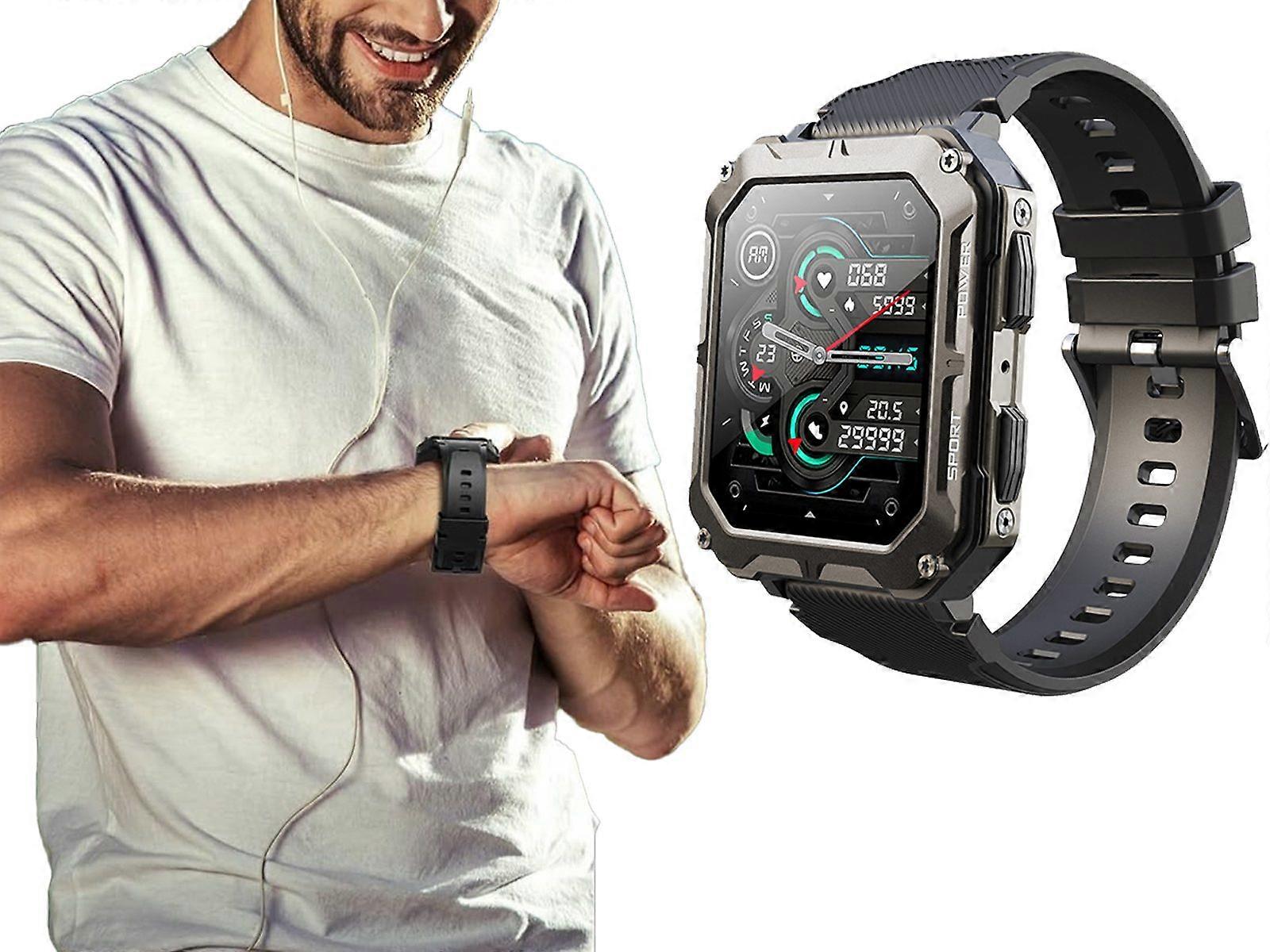 1.83 Inch Military Smart Bluetooth Watch Tactical Tracker Fitness Watch - Black