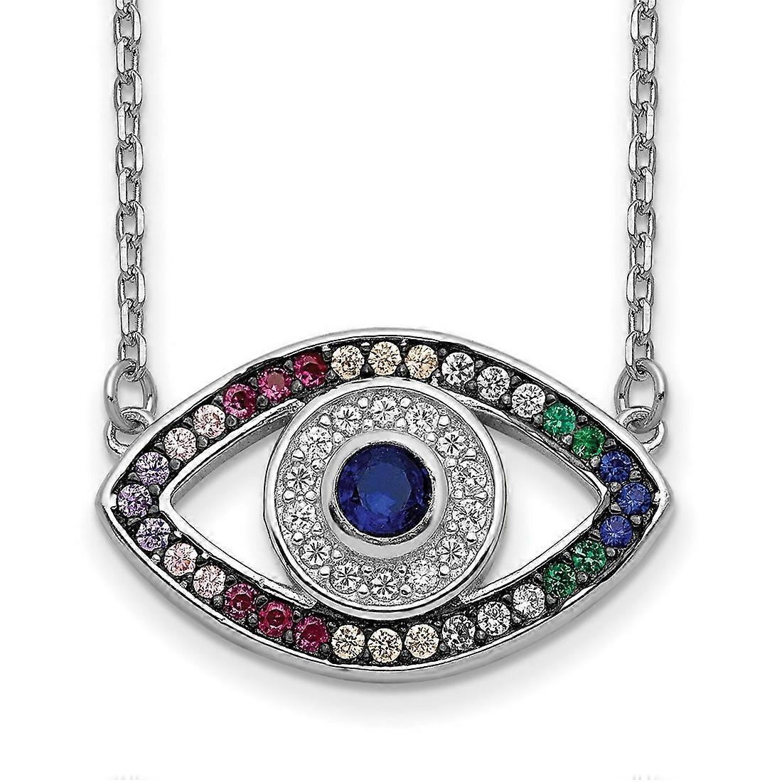 18.86mm 925 Sterling Silver Rhodium Plated Colorful CZ Evil Eye With 2 Inch Extension Necklace 16 Inch Pendant-Necklace
