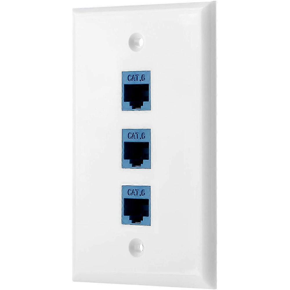1Pack 3-Port Ethernet Wall Plate, RJ45 Wall Plate with RJ45 Inline Coupler Insert,Cat6 Wall Plate
