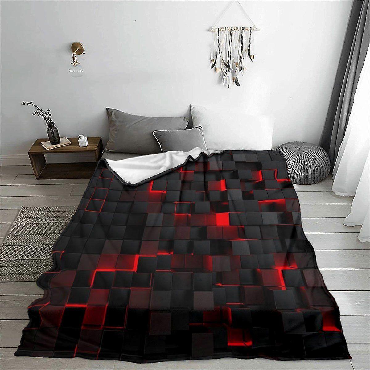 1pc 3D Digital Print Flannel Blanket - Contemporary Geometric Red & Black Cube Design, All-Season Soft Plush Throw for L-asdfg98