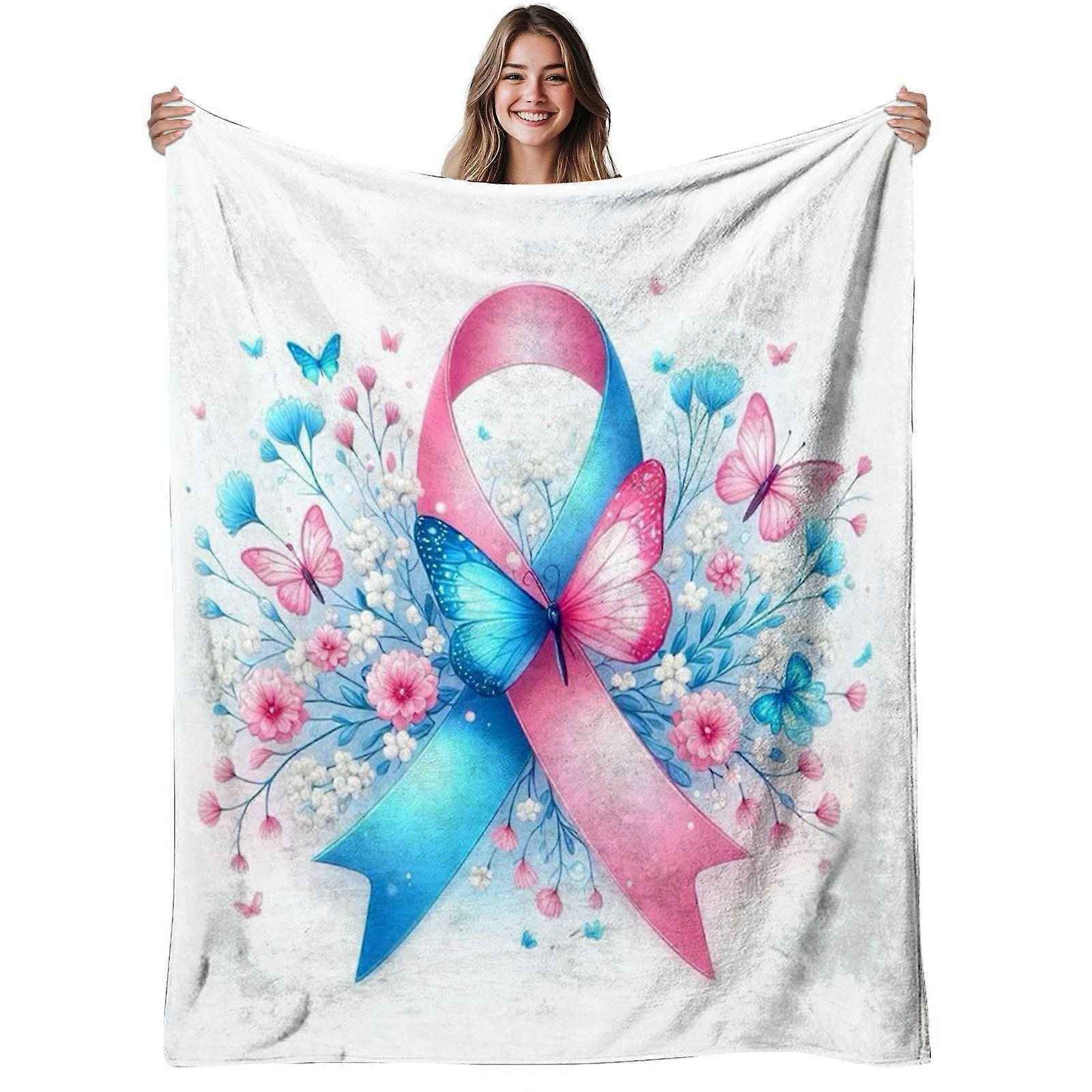 1pc Butterfly Ribbon Flannel Blanket | Soft, Warm, Floral and Butterfly Design Print, Polyester, 280gsm, All-Season Use,-qacvbg345