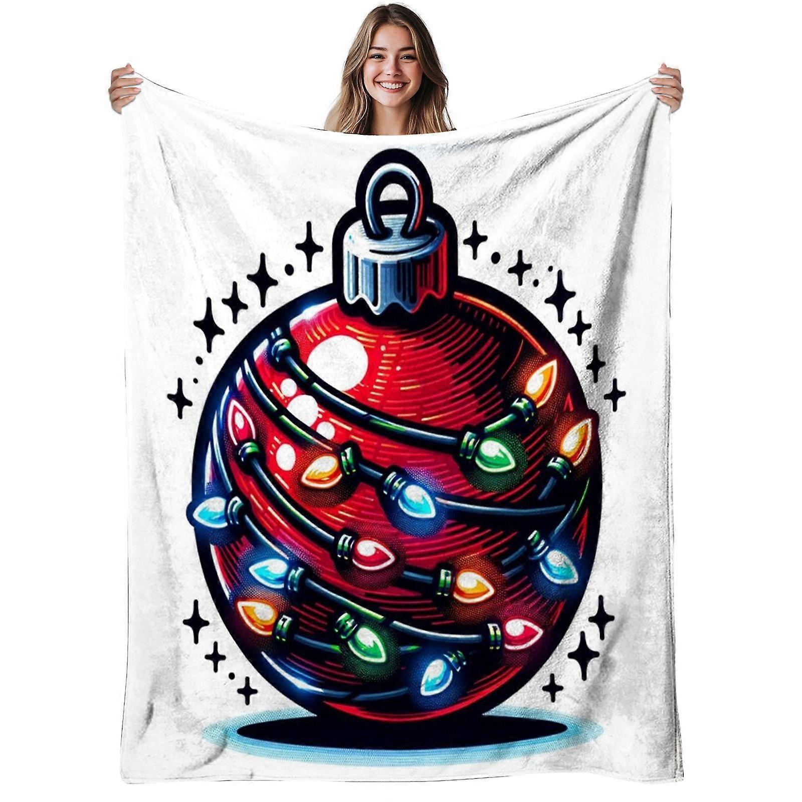 1pc Christmas Ornament Flannel Blanket | Soft, Warm, Retro Light String Design Print, Polyester, 280gsm, All-Season Use,-qacvbg197