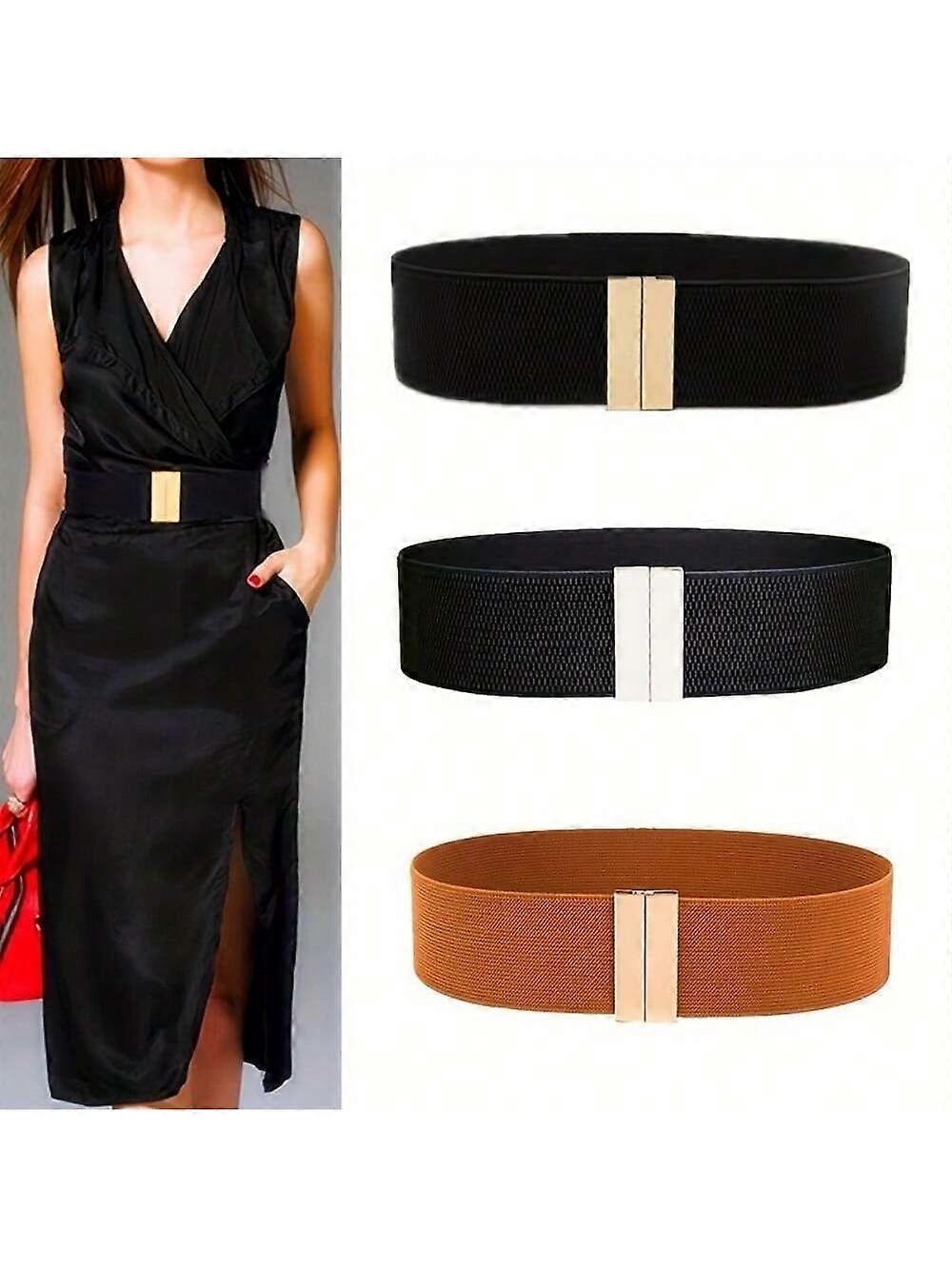 1pc Women Elastic Belt For Waist, Stretchy Wide Waistband For Dress, Shirt, Coat With Buckle - Black Waist Cincher GM001 Halloween