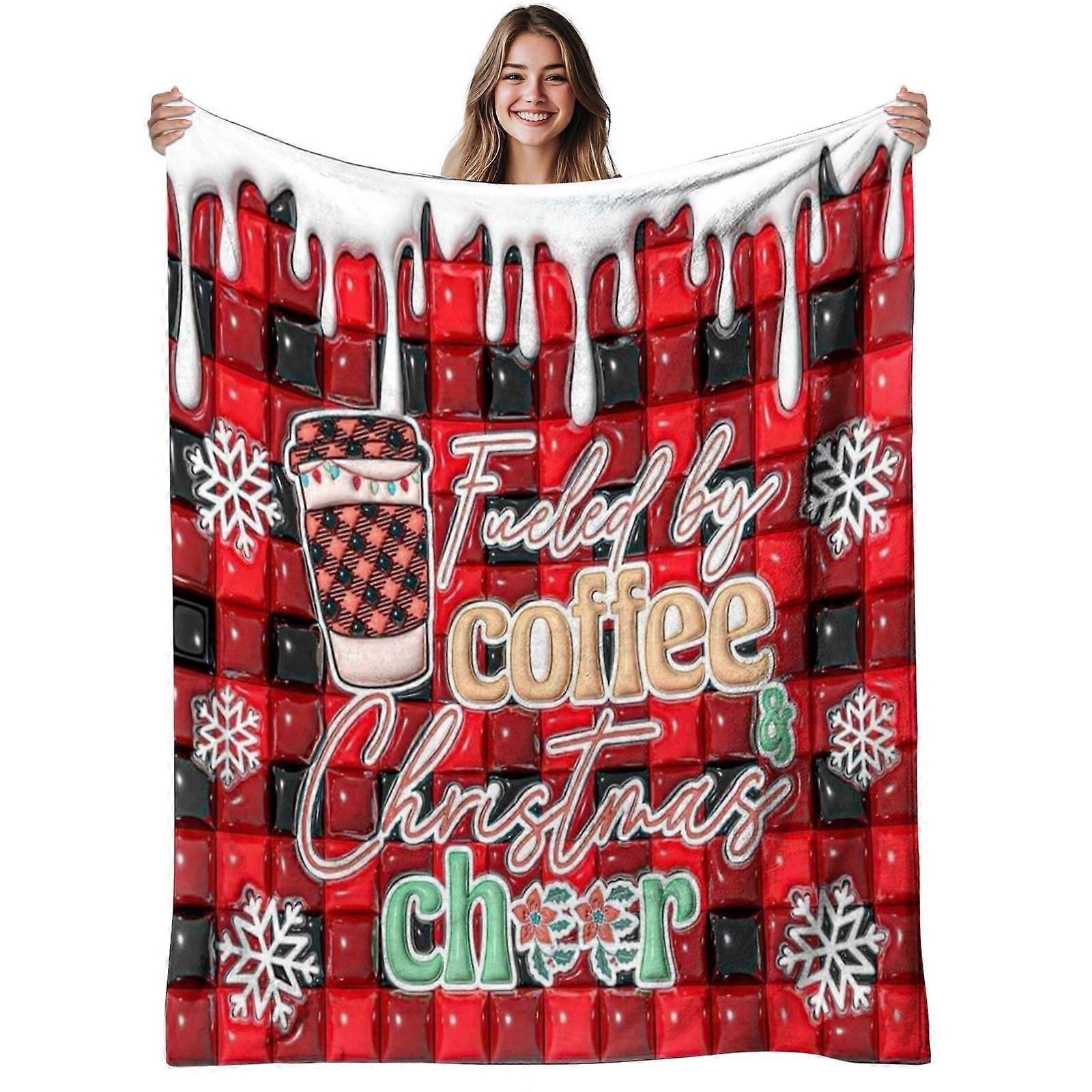 1pc Coffee and Christmas Cheer Flannel Blanket | Soft, Warm, Plaid Snowflake Design, Polyester, 280gsm, All-Season Use, -qacvbg255