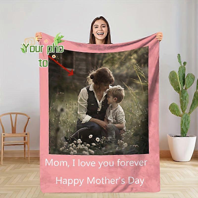 1pc Custom Blanket Picture Custom Mothers Day Gift Blanket Photo Custom Blanket Soft Flannel Couch Blanket TV Blanket On-edcvb79