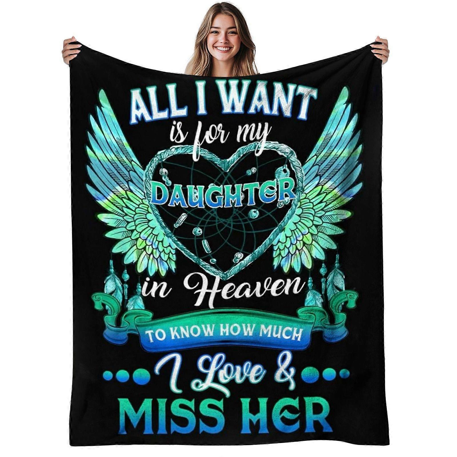1pc Daughter in Heaven Flannel Blanket | Soft, Warm, Winged Heart Design, Polyester, 280gsm, All-Season Use, Ideal for S-mnbvc22