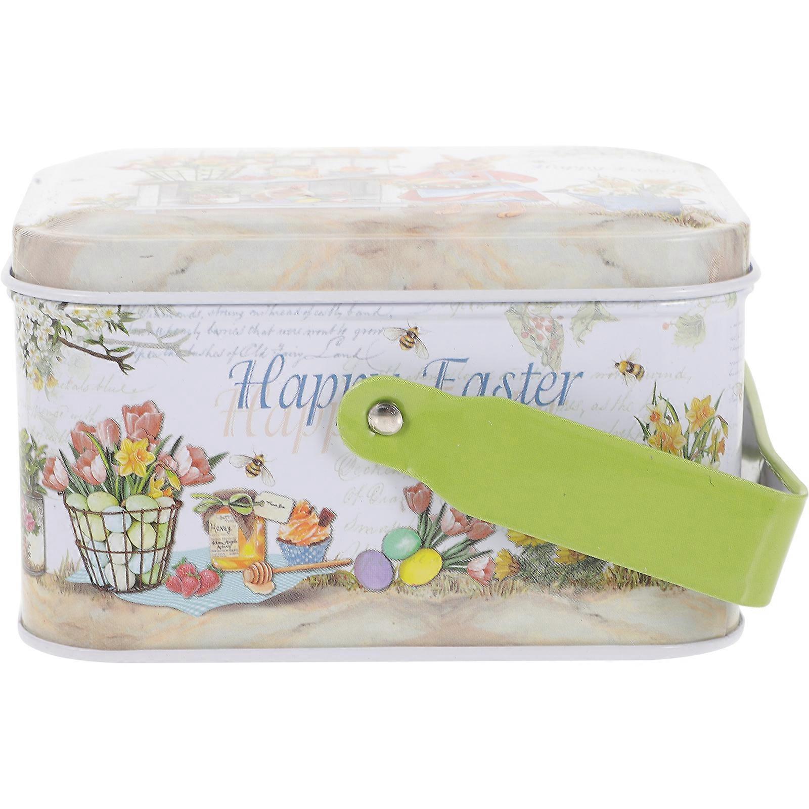 1pc Easter Candy Box Cookie Storage Box Easter Gift Packing Box Tinplate Box