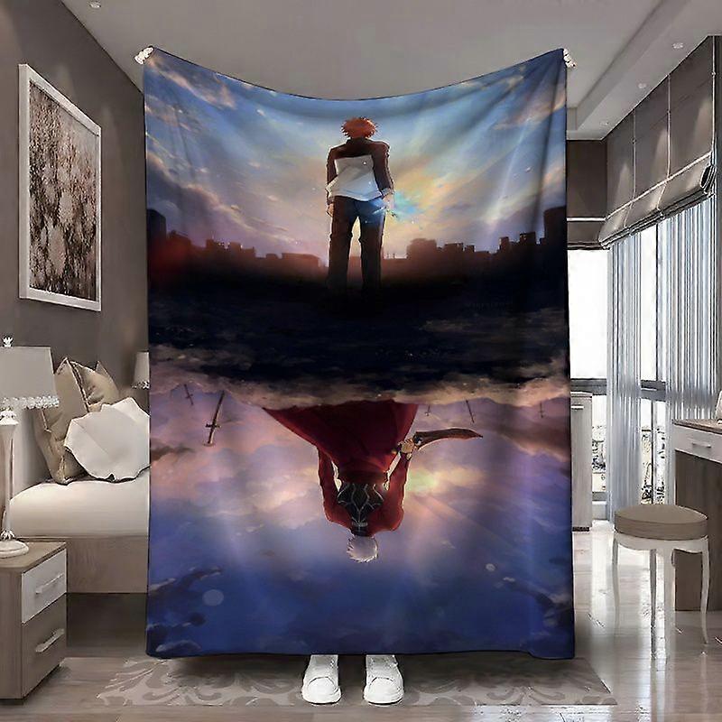 1pc FGO Red-Haired Boy and Dark Reflection Themed Plush Fleece Blanket - Ultra-Soft All-Season Bedspread with Anime Char-jghds185