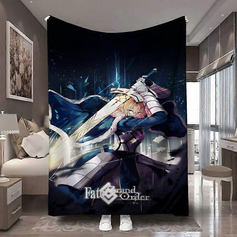 1pc FGO Saber Anime-Themed Blanket - FGO Saber Character Design with Saber Wielding Weapon, Ultra-Soft Flannel Bedspread-jghds125