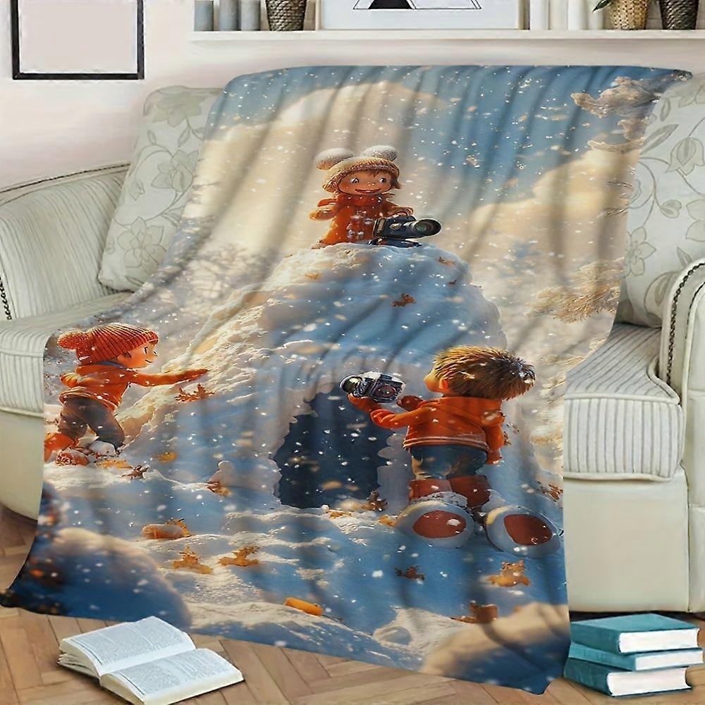1pc Flannel Throw Blanket - Soft All-Season Bedspread with Snowy Winter Scene, Durable Polyester Bedding for Couch, Camp-PGAZX366