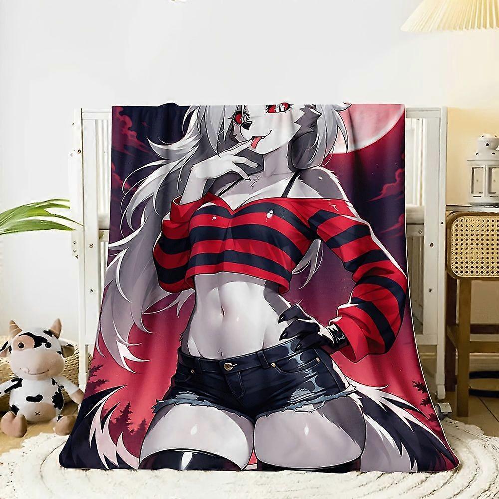 1pc Loona Anime Flannel Blanket - Soft Plush Throw with Red Stripe Character Design, All-Season Warmth for Bed, Sofa, Tr-asdfg379