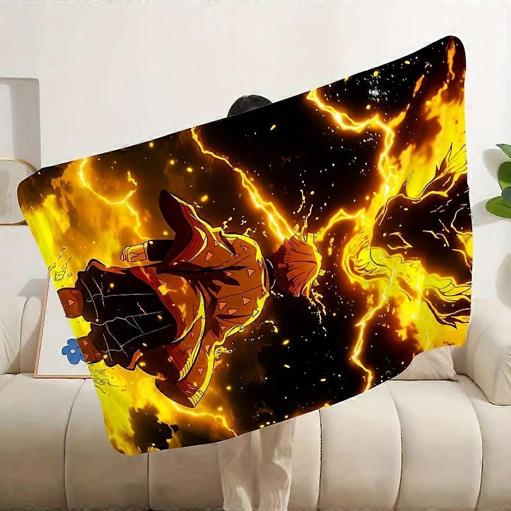 1pc of a Soft Flannel Blanket Featuring Cartoon Demons Slayer Design with Vibrant Flames And Lightning, Ideal for All Se-asdfg180