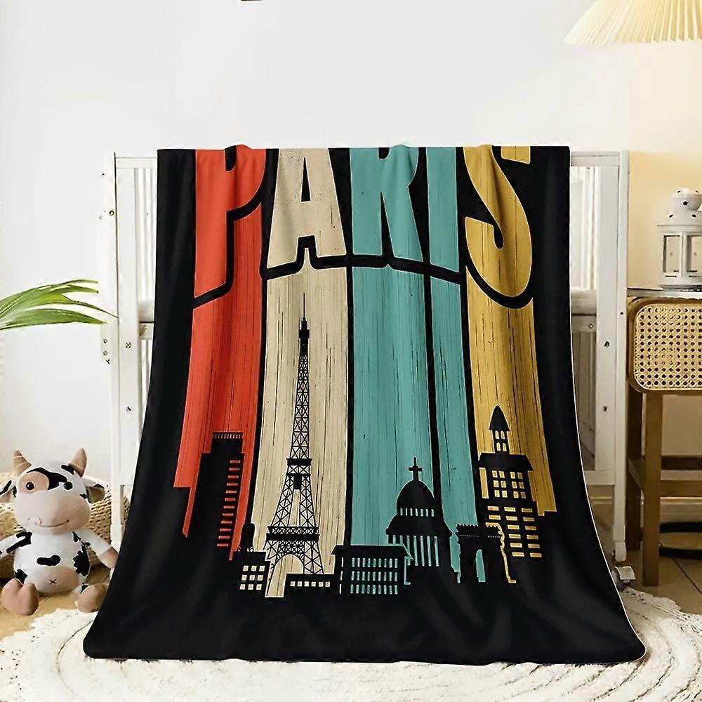 1pc Parisian Landmark Flannel Blanket - Soft, Machine Washable Throw with Eiffel Tower & Arc de Triomphe Design, Perfect-LMNBV327