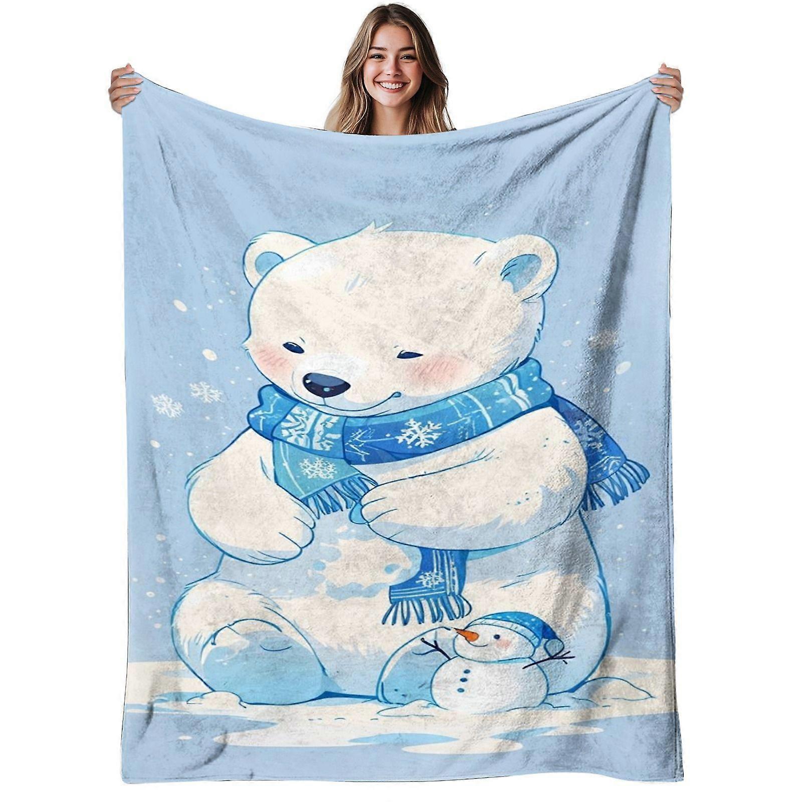 1pc Polar Bear Flannel Blanket | Soft, Warm, Snowflake Scarf Design Print, Polyester, 280gsm, All-Season Use, Ideal for -qacvbg316