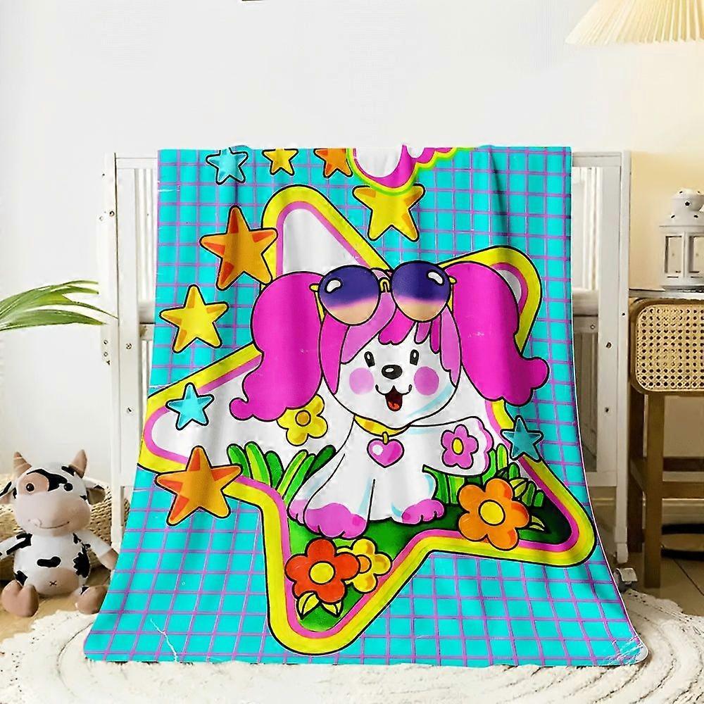 1pc Poochie Flannel Fleece Blanket - Lightweight, Warm, and Soft Polyester Throw with Playful Dog Design, Perfect for So-azxcv329