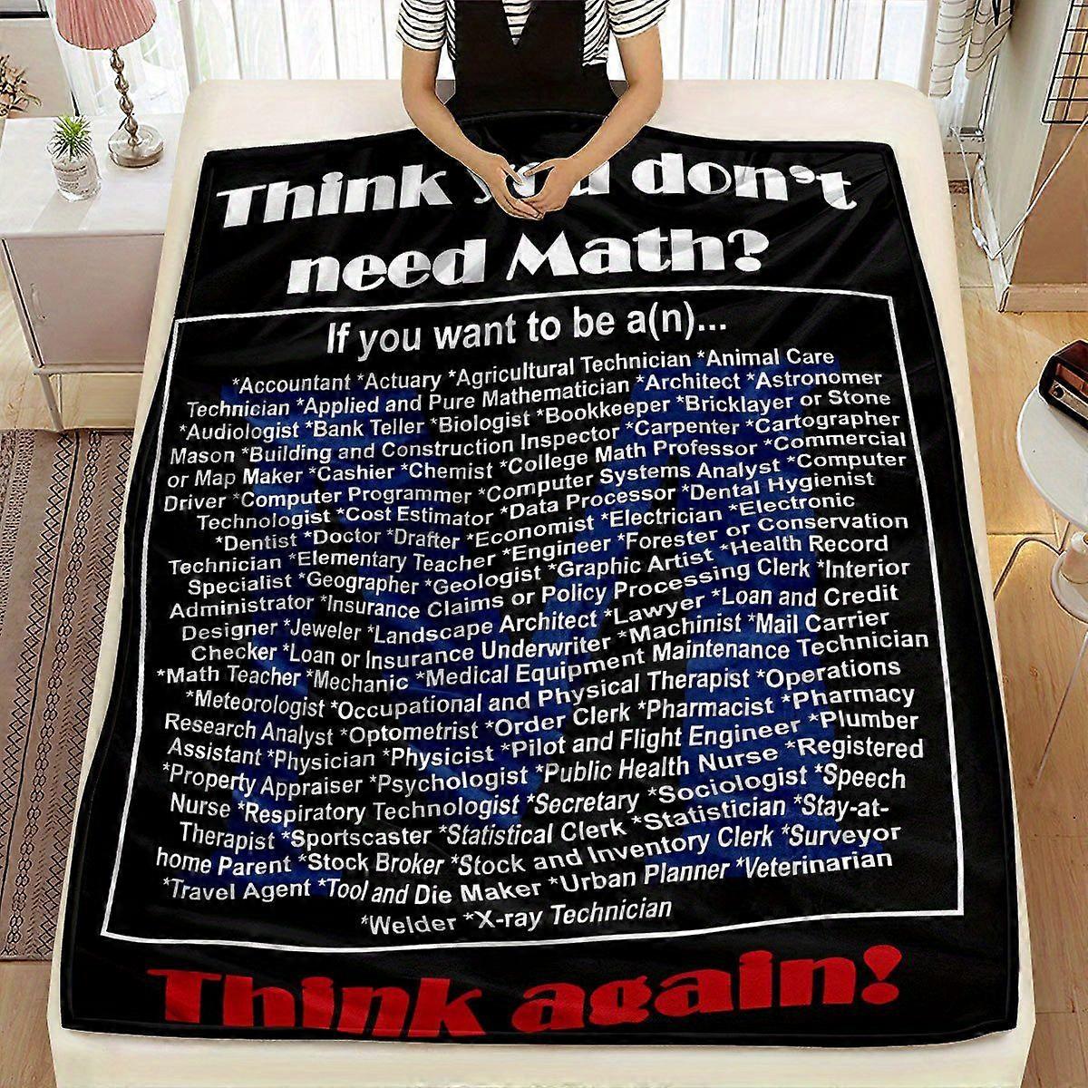 1pc Preppy Style Polyester Flannel Blanket with "You Need Math" Print - All Seasons Multipurpose Stain Resistant Knit Fa-poiuy280
