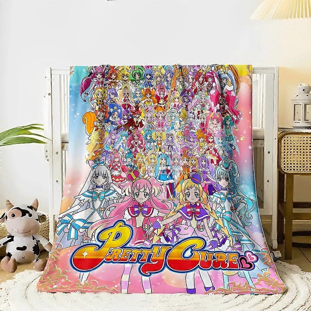 1pc Pretty Cure Flannel Blanket - Vibrant Character Design, Soft & Light Beige-Friendly, Polka Dot Gradient, Machine Was-LMNBV262