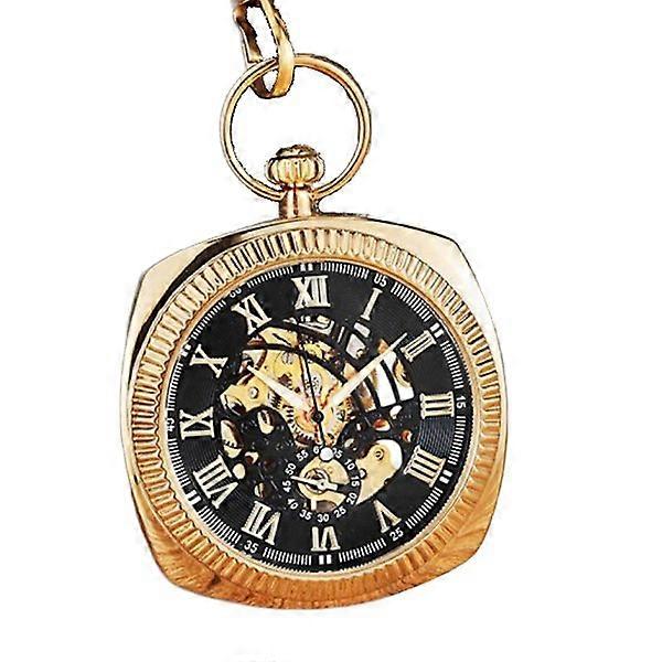1PC Gold Square Roman Numeral Mechanical Watch with