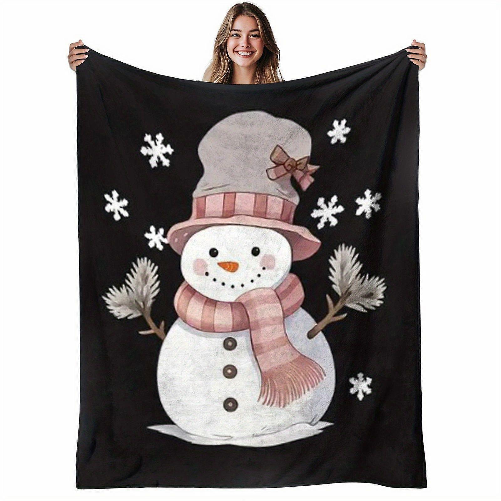1pc Snowman Flannel Blanket - Soft Warm Winter Bedspread with Cute Snowman & Snowflake Patterns, Cozy Bed Cover for Sofa-mnbvc125