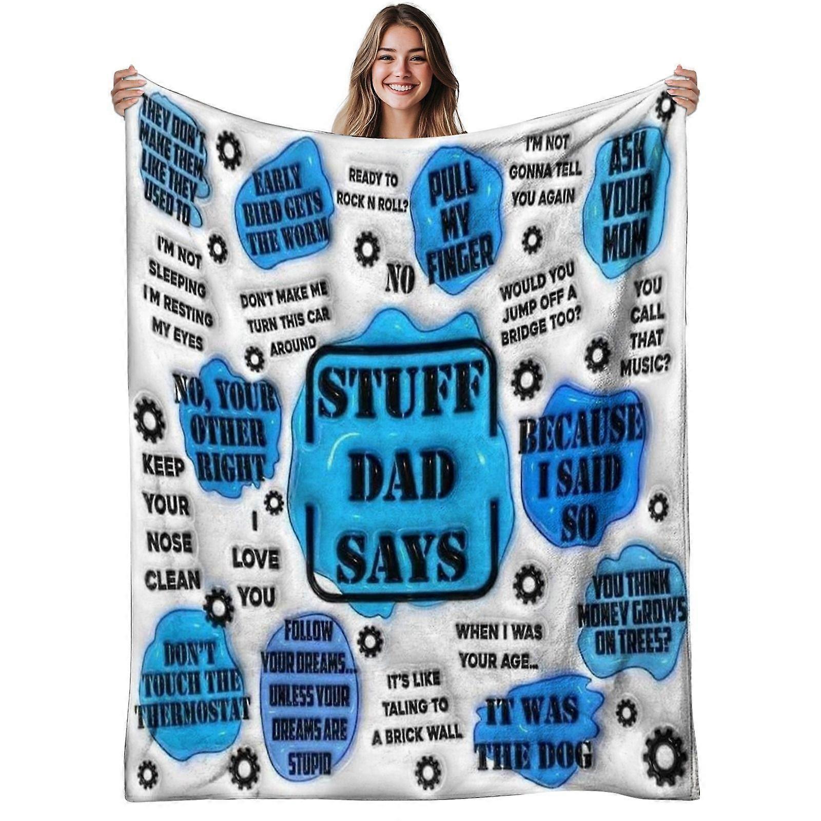 1pc Stuff Dad Says Flannel Blanket | Soft, Warm, Humor Quote Pattern, Polyester, 280gsm, All-Season Use, Ideal for Sofa,-qacvbg368