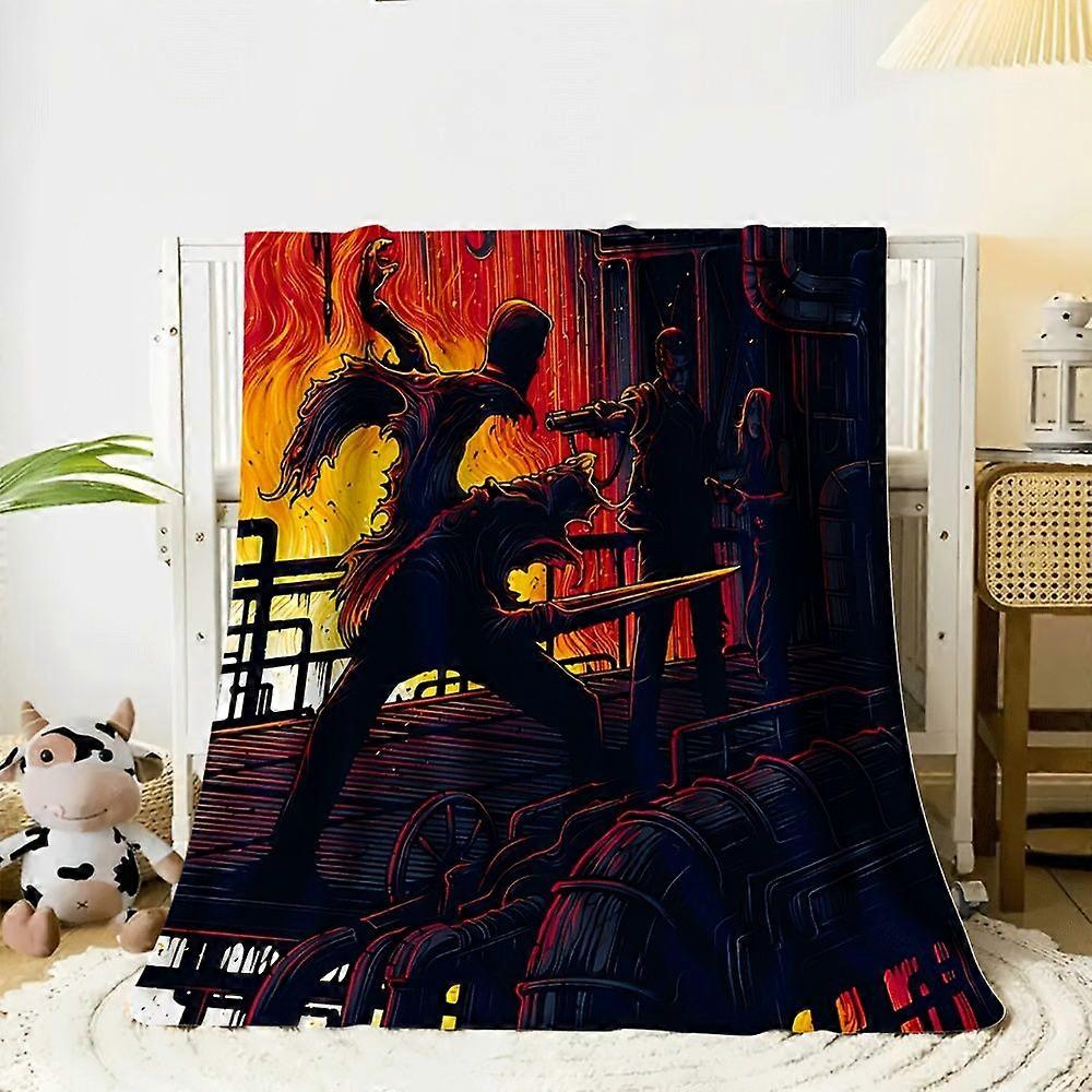 1pc The Terminator Movie Poster Blanket - Soft Flannel Throw with T-800 Endoskeleton Design, Dark Red & Black Retro 80s -AZXRT175