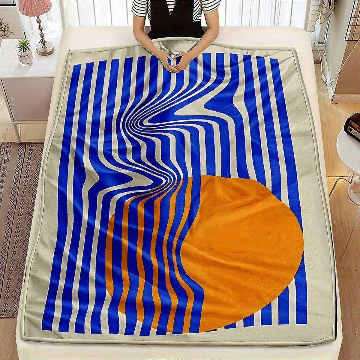 1pc Vibrant Abstract Wave Design Polyester Throw Blanket, Soft & Lightweight 200-250g, Multi-Purpose for Bed, Office, Pi-poiuy91