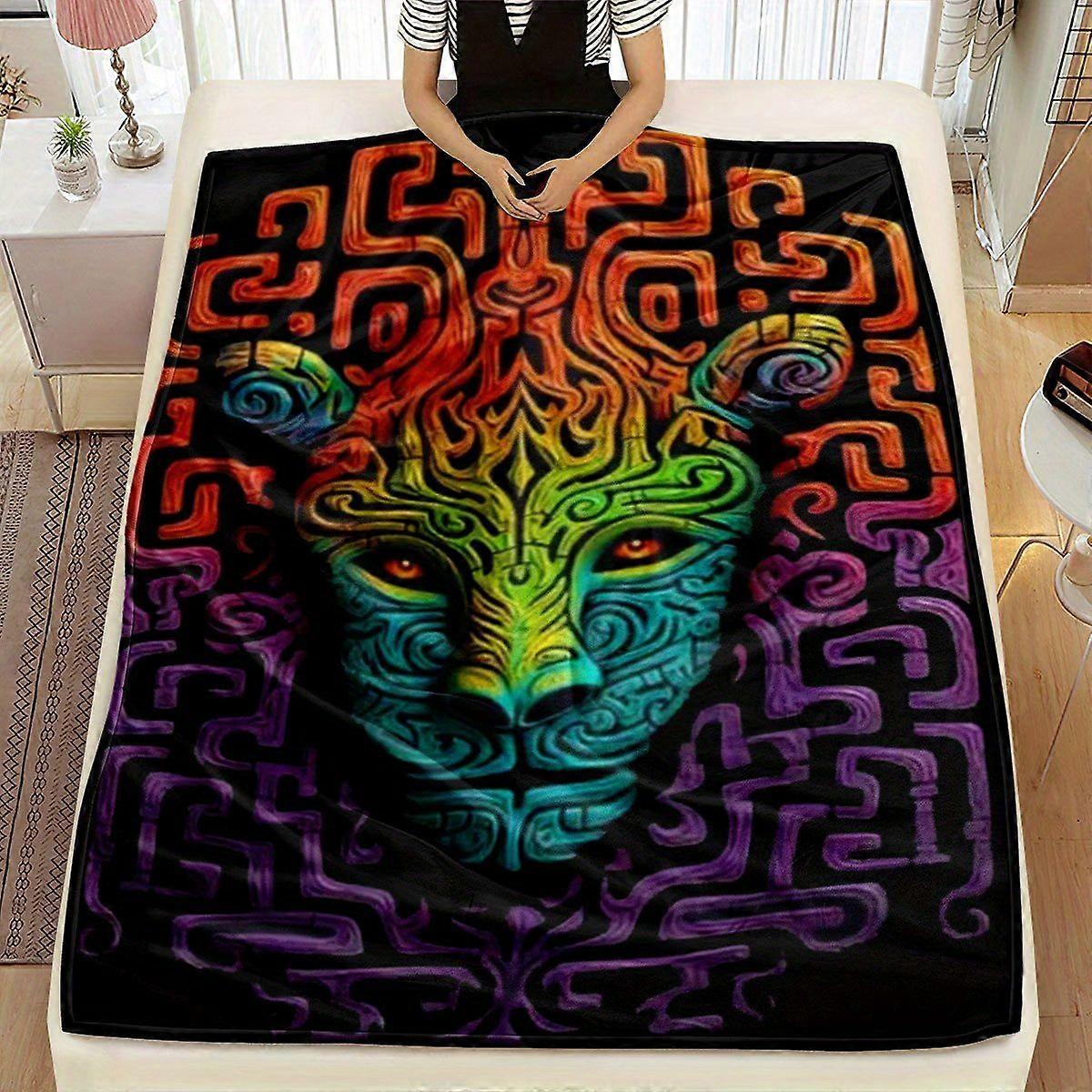 1pc Vibrant Lion Head Printed Throw Blanket - Soft Polyester, Colorful Maze Design, Perfect for Birthdays, Festivals, an-POKJH212
