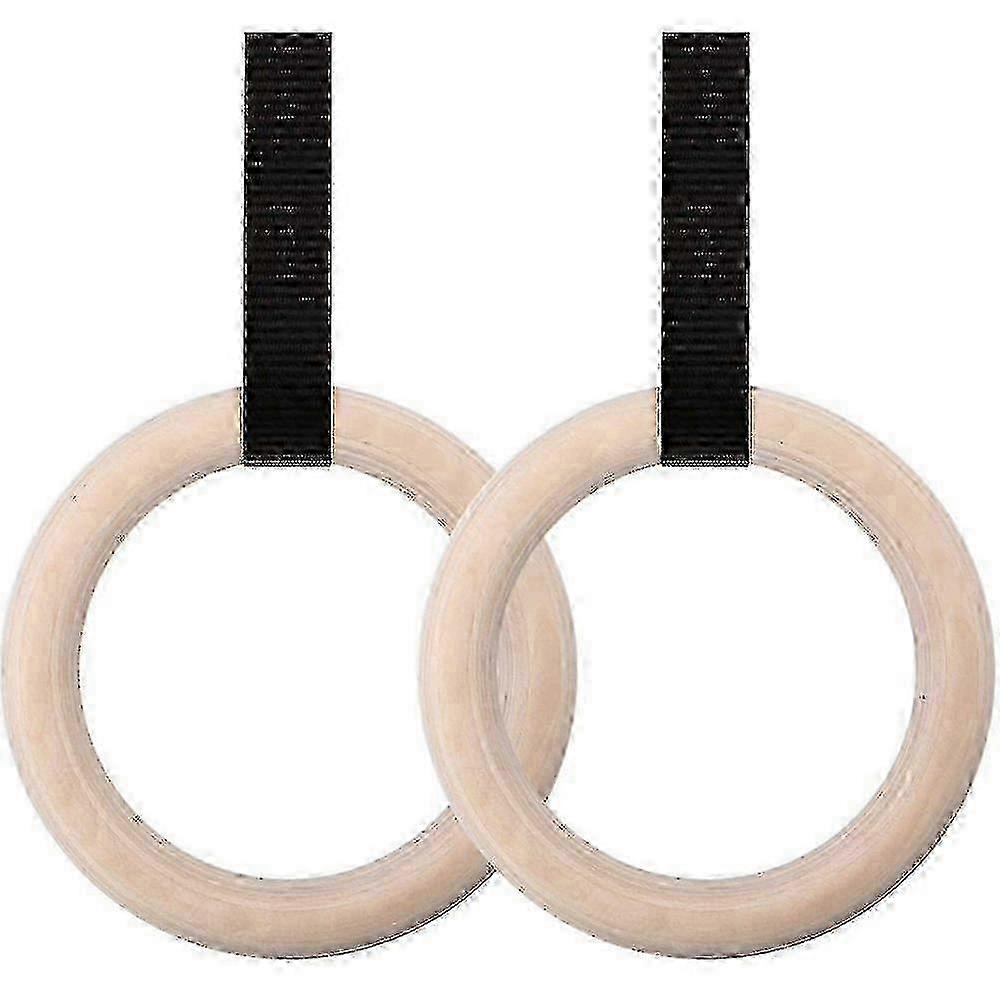 2X Wooden Gymnastic Rings with Adjustable Nylon Straps 3cm 25-26