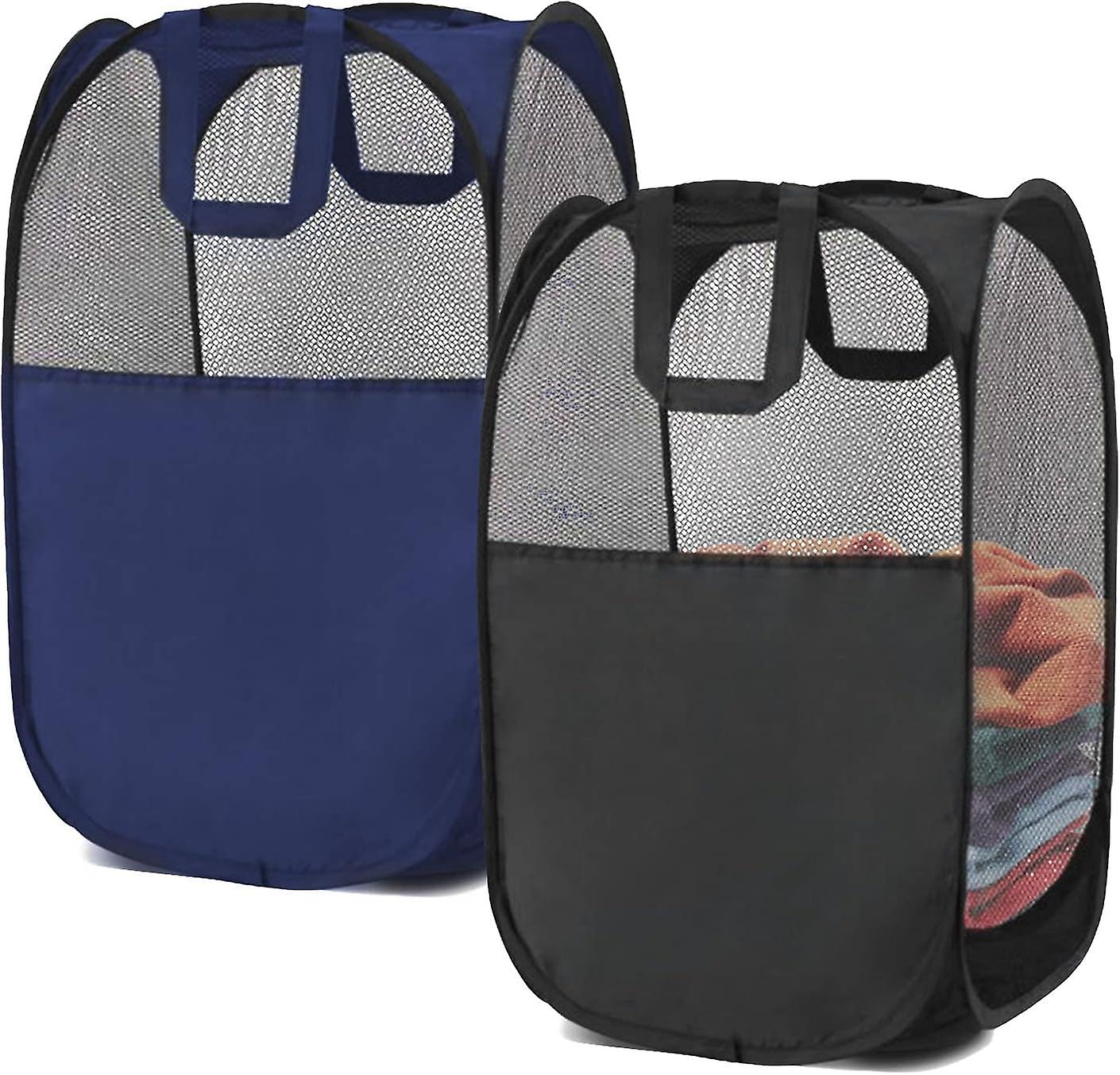2 Laundry Baskets, Pop-up Laundry Baskets, Foldable Mesh Laundry Baskets (each With 2 Reinforced Handles), Black + Blue